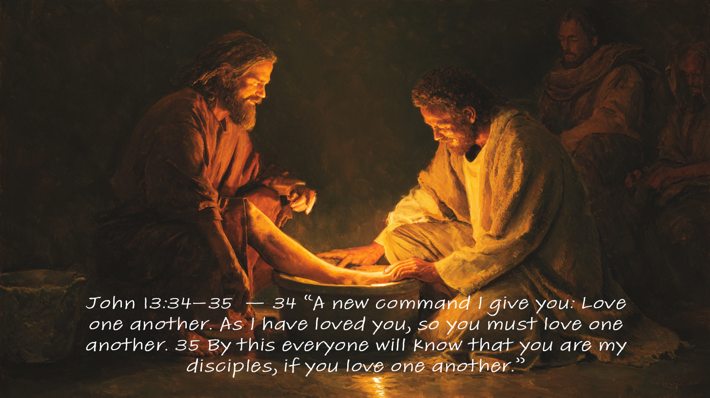 John 13:34–35 – On the night before His death, Jesus gave His disciples a new commandment: “Love one another. As I have loved you, so you must love one another. By this everyone will know you are My disciples.”