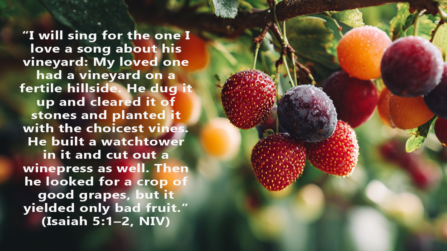 Isaiah’s image is a picture of how God has worked with His people. He chose Israel, rescued them from Egypt, gave them His law, and planted them in a land flowing with milk and honey. He provided everything they needed to flourish. When we look closer, we realize the vineyard isn’t just about ancient Israel—it’s about us, too. God has done the same careful work in our lives. He chose us before we chose Him. He cleared away obstacles. He surrounded us with people who spoke His truth, and He poured His Spirit into us to help us grow.
