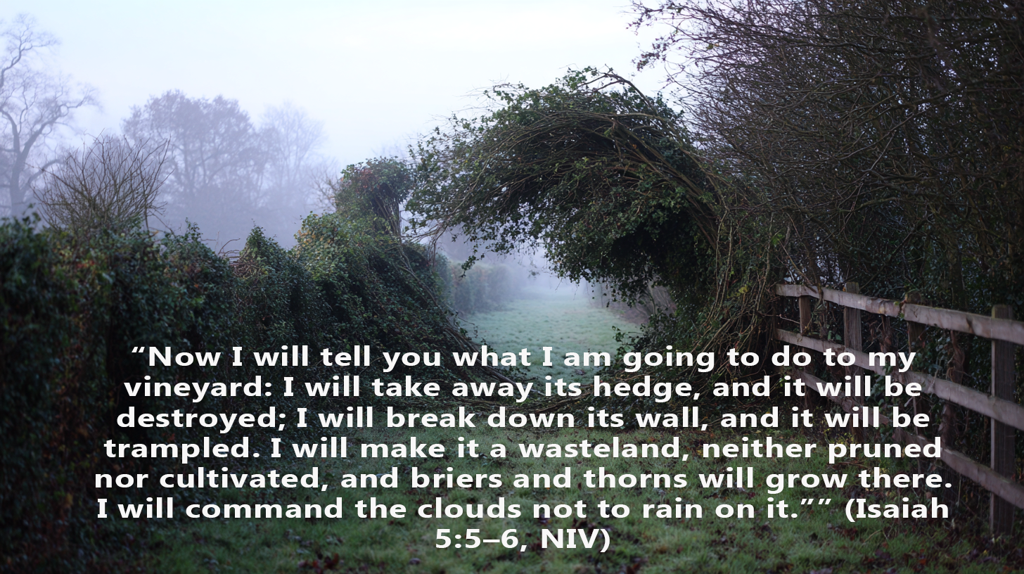 God removes the vineyard’s hedge, leaving it open to be trampled and destroyed.